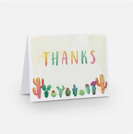 - Thanks cactus folded card: blank inside, provided with a white envelope