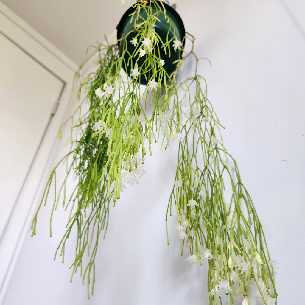 Preferring bright, indirect light and moderate watering, this epiphytic succulent thrives in ambient humidity.