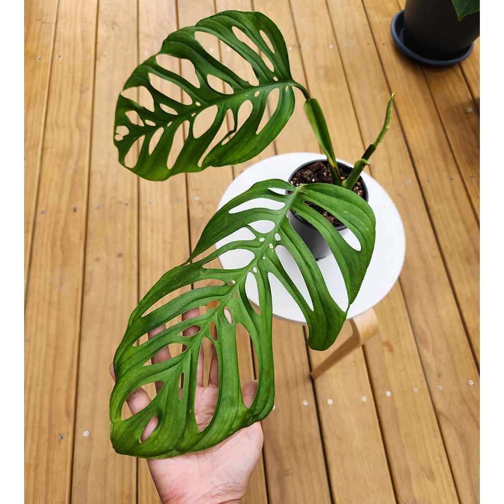 The Monstera esqueleto, also known as Monstera epipremnoides, is a rare species native to Central and South America. It closely resembles the Swiss cheese plant but is distinguished by its much larger, elongated leaves. These leaves are deeply lobed and feature striking fenestrations, making the plant highly prized among collectors. This species is an exceptional addition for those seeking a distinctive and botanically intriguing specimen.